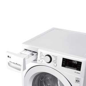 Motor LG Inverter Direct Drive de alta eficiencia que mejora el rendimiento de lavado y la durabilidad del equipo, pero sin el ruido y sin vibración. Además, el motor Inverter DD disipa menos energía, reduciendo el consumo de electricidad.