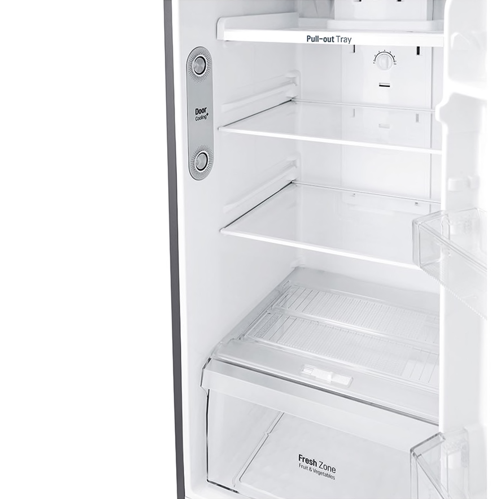 • DoorCoolingTM, enfriamiento constante y eficiente, 35% más rápido que un sistema de enfriamiento convencional. Reduce significativamente la diferencia de temperatura entre los compartimentos interiores y los de la puerta.